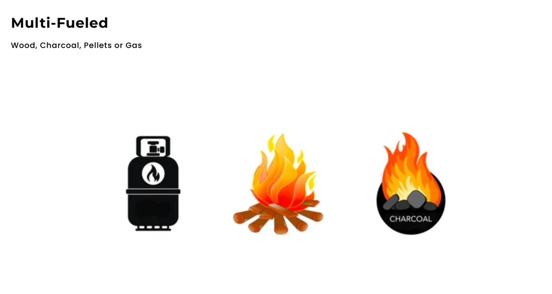 -Use Charcoal, Wood, Pellets and/or our Gas Burner Attachment