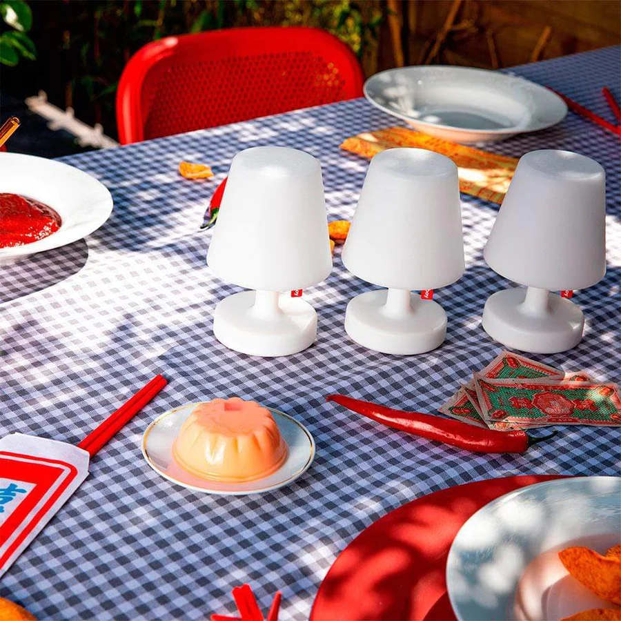 This set of three mini, portable table lamps can be used all around the house. Put one here, there, or all three together. Their soft, subtle lighting gives them a candle-y feel, but with a lampshade style. There are three brightness settings to get the mood right. Lamps starting to dim? They’re quick and easy to charge. With protection against rain and spray water, these lamps aren’t afraid of the big outdoors either. Just three cheerful rays of light for your table.
