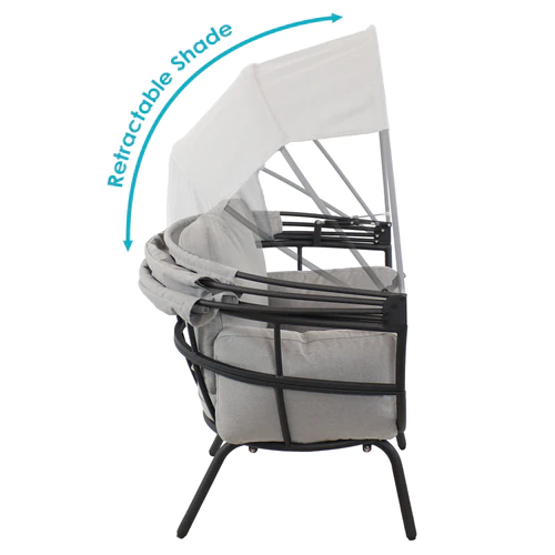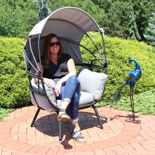 Whether you’re looking for shade or sun, the modern luxury patio egg chair with legs is the perfect addition to your patio, deck, or front porch. Featuring a convenient retractable shade, this cozy chair allows you to get the perfect amount of sunshine. This sturdy outdoor chair has a dependable, powder-coated aluminum frame and plush cushions. The cushions also feature a convenient zipper so it is easy to remove the cases for simple cleaning.