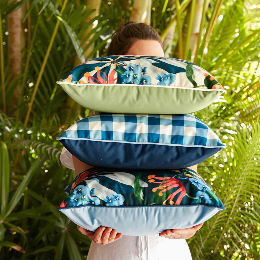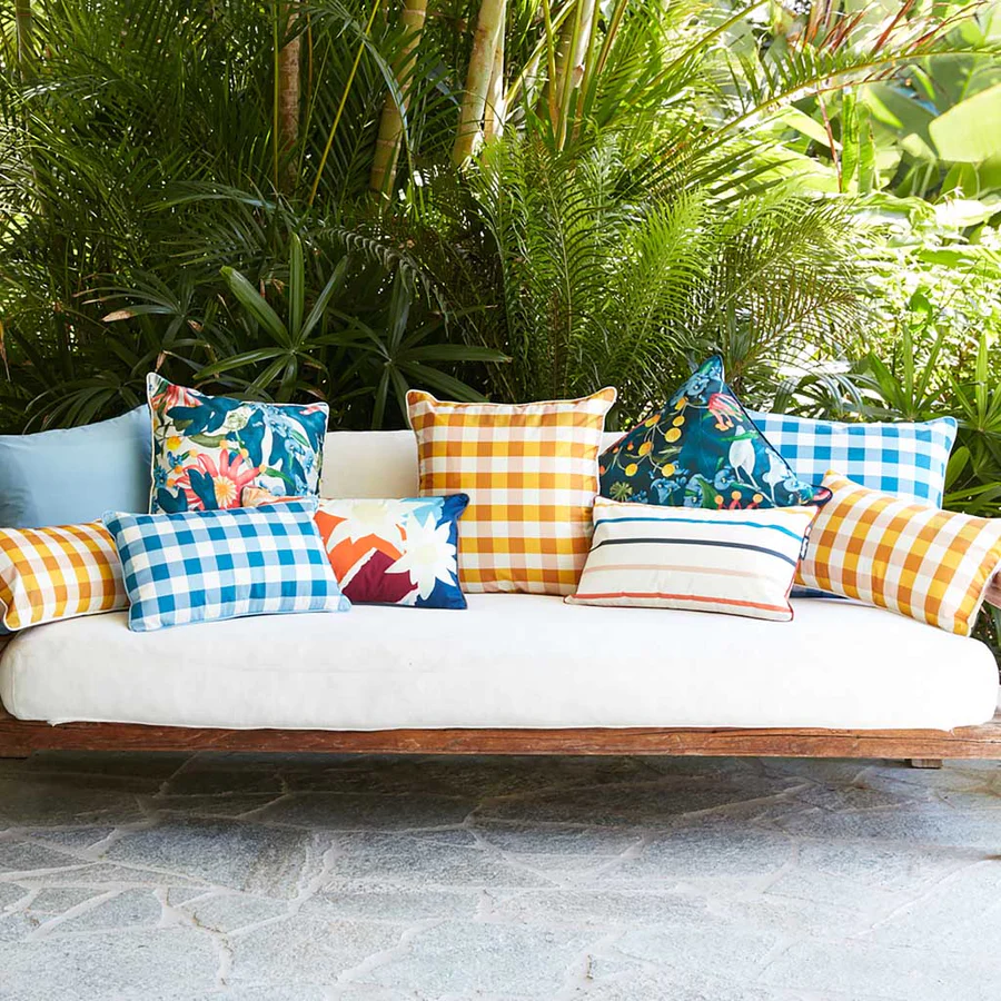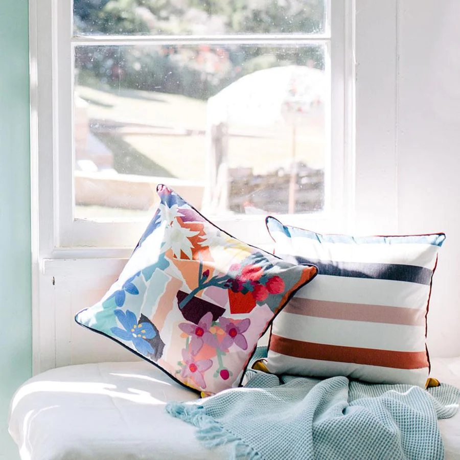 Spruce up your outdoor space with these beautiful indoor/outdoor cushions by Basil Bangs.