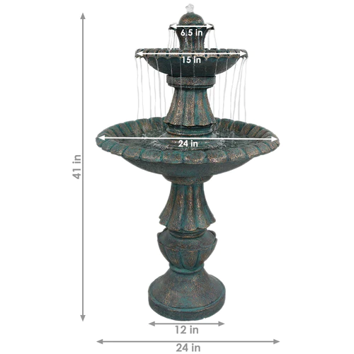 Make a statement in your landscape with this gorgeous outdoor tier fountain centerpiece. Unwind as water bubbles out of the top and trickles its way down each tier to create a calming experience. Made of durable polyresin fiberglass, this outdoor tier fountain will give you many years of beauty and performance. Plus, no plumbing or prep work is required. Simply assembly, fill with water, plugin, and enjoy.