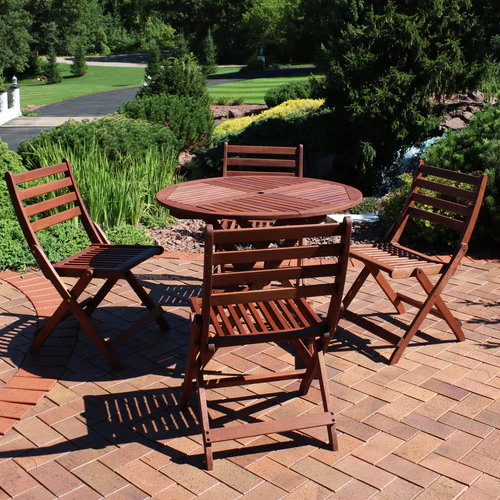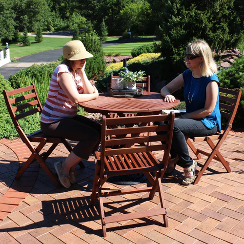 Sunnydaze 5-Piece Meranti Wood Round Dining Table with Folding Chairs