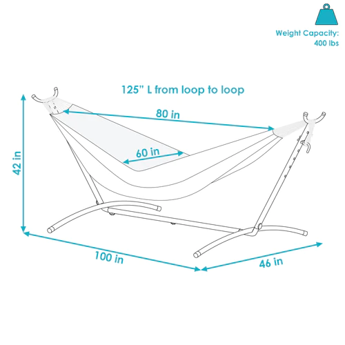 Find comfort and coziness as you cocoon into this Brazilian-style double hammock with stand by Sunnydaze Decor. Perfect for the patio, backyard, or camping, this Brazilian-style 2 person hammock will help you relax from the stress of a long day. The included heavy-duty metal stand allows you to place this Brazilian hammock wherever you’d like. Plus, the multiple color options gives you the freedom to choose the double hammock with stand style that fits your decor.